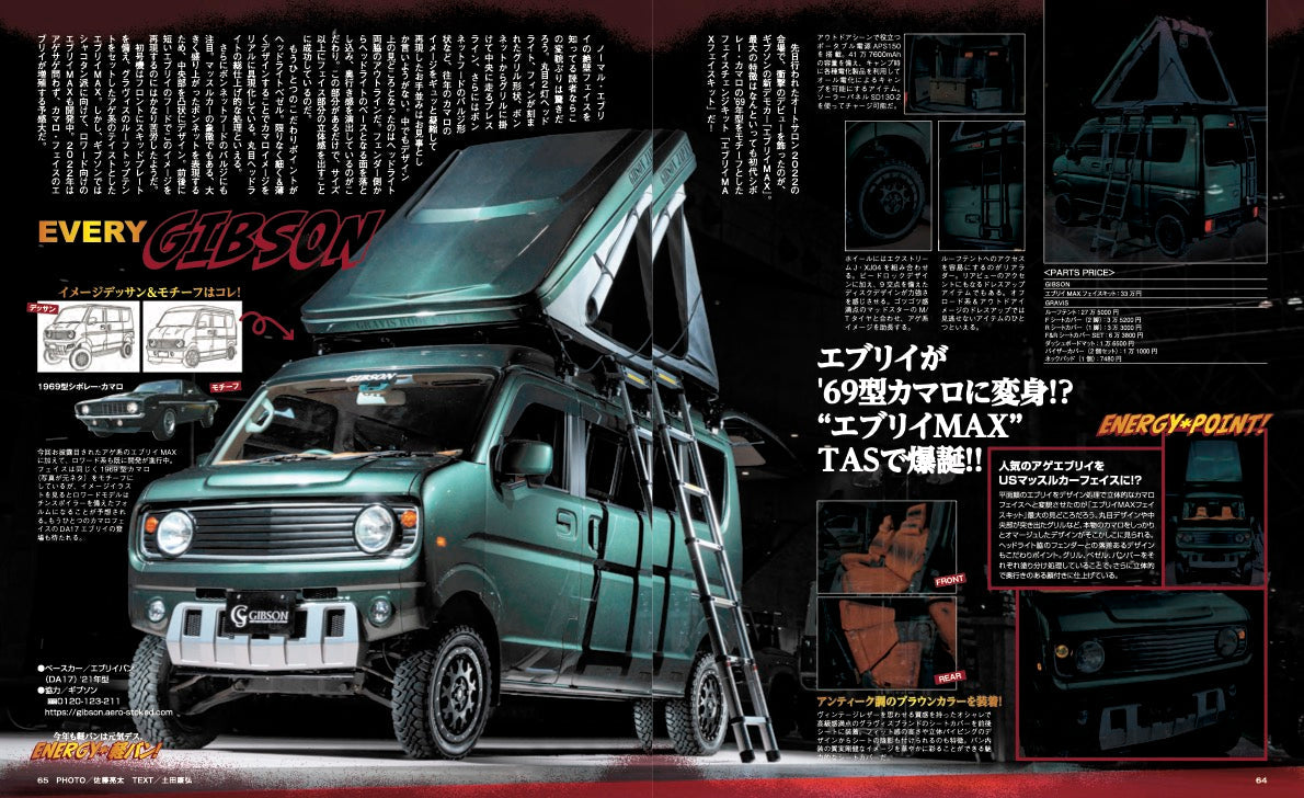エブリイをベースに、往年のシボレーカマロフェイスをビルトインした「エブリイMAX」。軽バンフェイスチェンジキットをリリースしました。