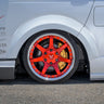 フロント:約23mm、リア:約25mm下がる設計となり、フェンダーとタイヤの隙間を隠し、ローフォルムに見せる効果も発揮します。